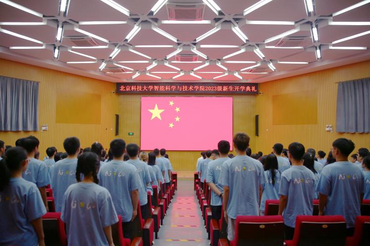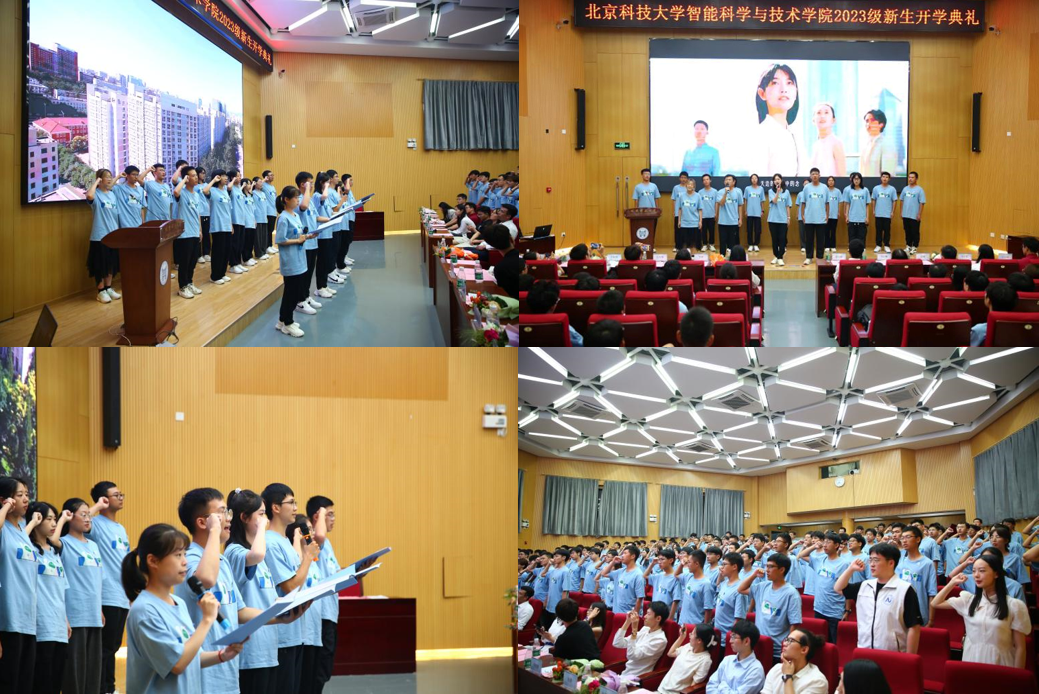 学院党委书记陈大鹏、副院长覃京燕、副院长刘红敏,学院新生引航导师、校友、学长,优秀毕业生代表、第十七届校长奖章获得者代表刘宇轩,首届“AI之光”院长奖章获得者张兆隆,各年级辅导员以及全体2023级新生出席开学典礼。典礼由学院党委副书记、副院长韩宁宁主持。