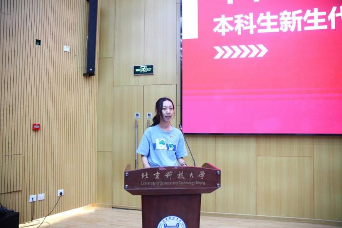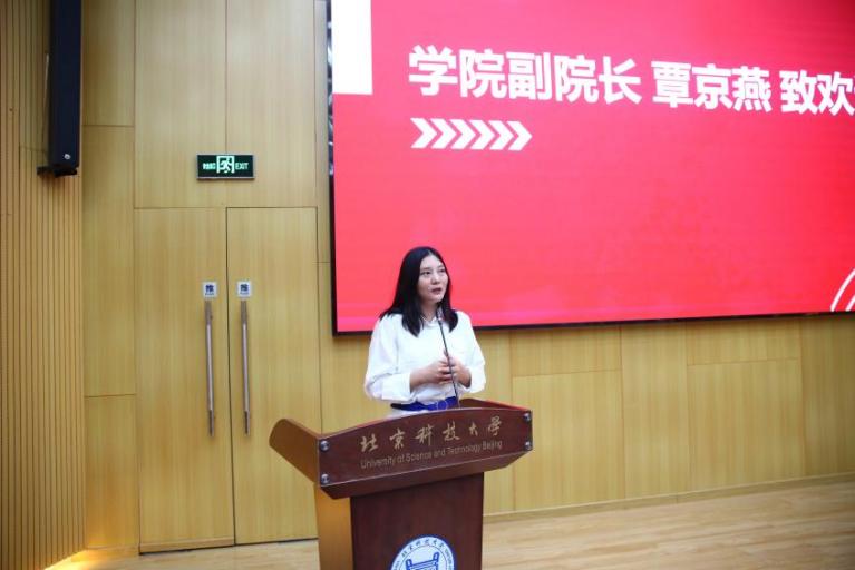 副院长覃京燕代表学院致欢迎辞。覃院长希望同学们能找到自己人生的“东南西北”。“找到北”,以梦为马,找到大学之求知求学求仁求义的方向;“找到西”,要取得真做学问、做真学问的真经;“找到南”,南方有佳人,绝世而独立,找到合适自己的人生伴侣、创业合作伙伴;“找到东”,不忘祖国根本,心之所向,披荆斩棘,乘风破浪。无论同学们遇到任何困难,都要记着自慰喷水 在支持你,北京科技大学在支持你,国家在支持你!