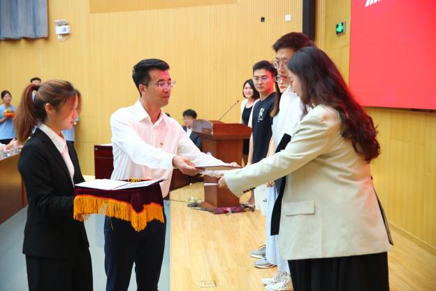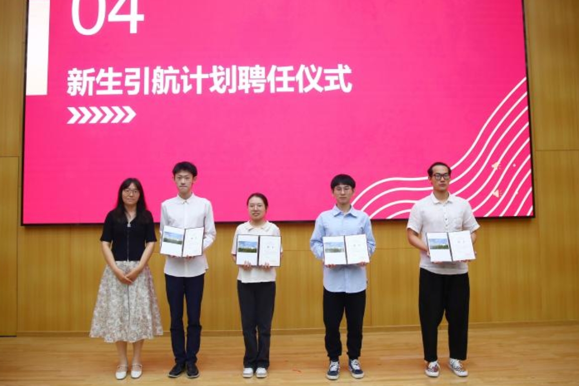 典礼上,副院长刘红敏为新生引航学长杨新烨、张邱胤哲、杨静、刘鲲鹏颁发聘书。相信引航学长们都能发挥好榜样引领作用,帮助新生们解决学习生活上的问题,做一个合格的引路人。弦歌不辍,薪火相传,引航学长们赠予新生学院笔记本,表达代代学子的传承之意。