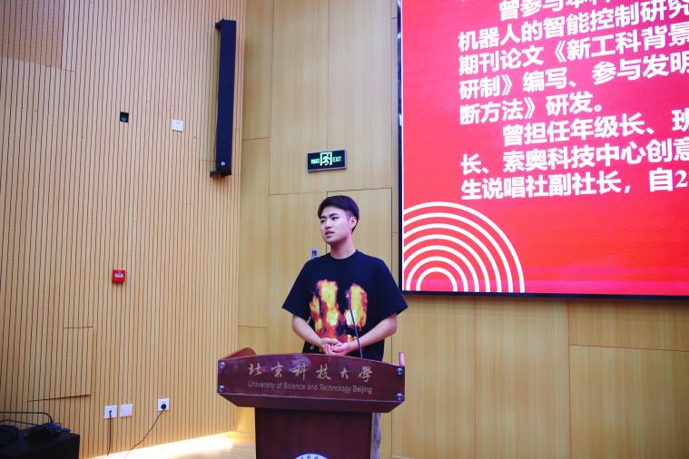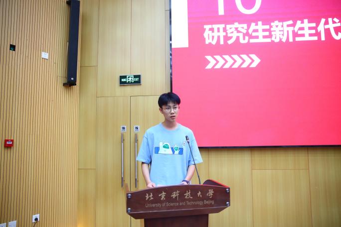 刘畅作为研究生新生代表发言,他从“作为一名北科学子该如何肩负‘钢铁报国,科教兴邦’的时代使命?”出发,号召同学们刻苦钻研、自强不息、勇担重任,担负起新时代“钢小伙、铁姑娘”的责任和使命。