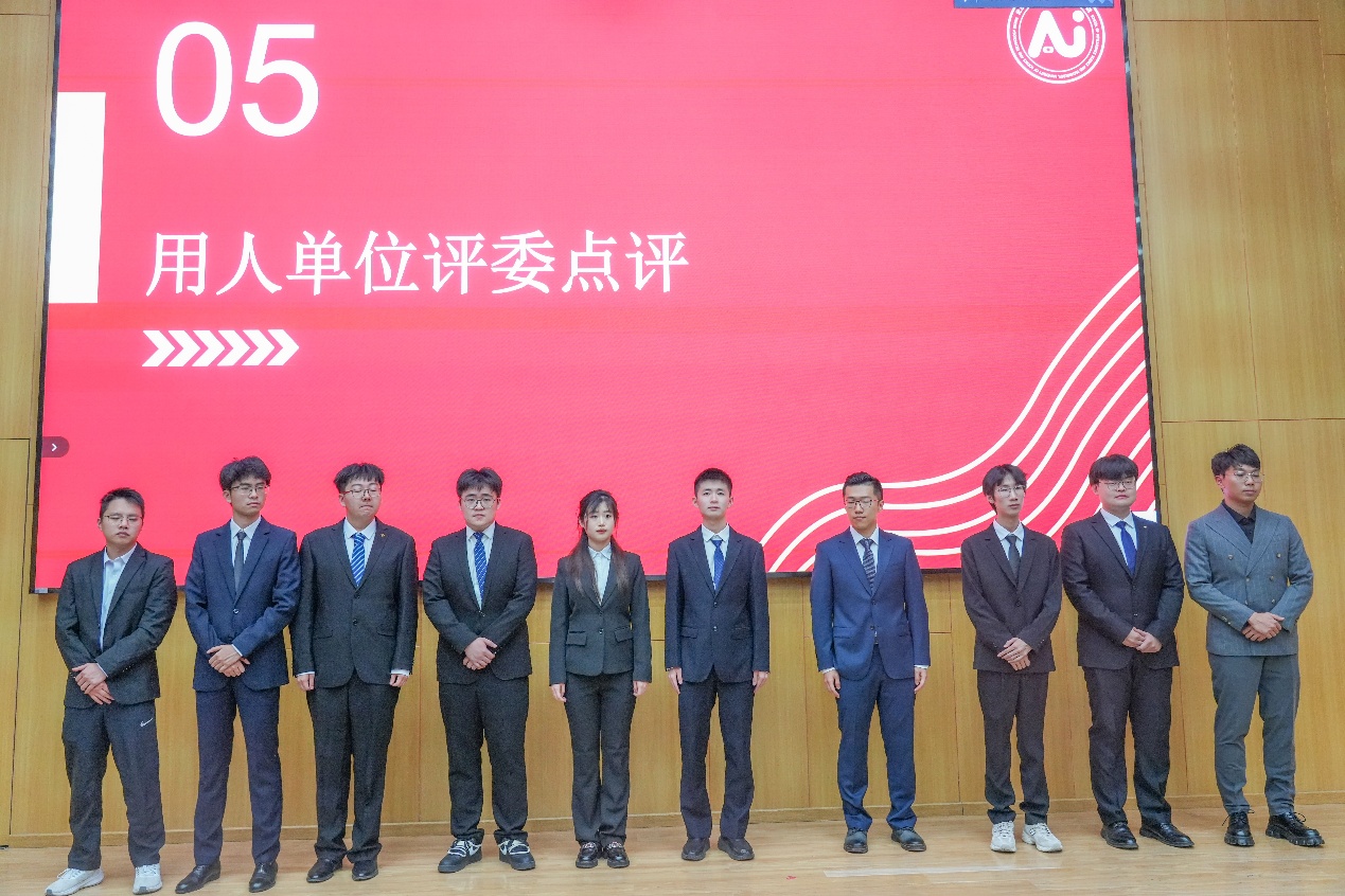 在答辩环节,候选人不仅分享了自己的成果,还现场抽取题目,围绕人工智能伦理、技术发展趋势、跨学科合作等热点话题阐述观点。他们清晰的逻辑、深入的思考以及对专业的热爱,赢得了现场评委与观众的阵阵掌声。