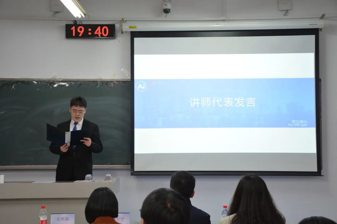 王宝杰作为讲师团成员代表发言,他回顾了自己从大一以来接受讲师团帮助的心路历程,承诺将从三方面入手,一是为自己上过的每一节课负责;二是开展个性化的课后答疑;三是做一名不断成长的讲师。