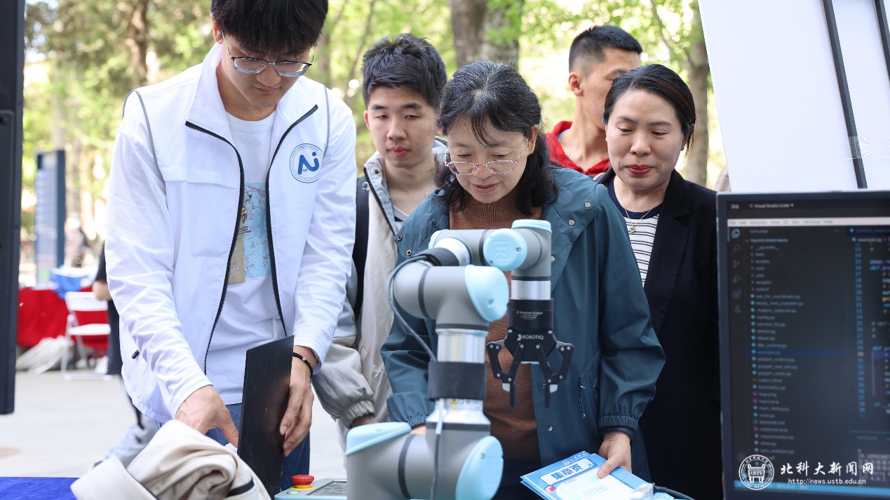 “AI党建”区域中,智能乐器唱响强国《有我》最强音,3D打印“钢筋铁骨”“求实鼎新”,“一颗红芯”编程挑战赛用代码讲述爱校爱国之心。“AI创新”区域中,人工智能元宇宙创新摄影带领学生们穿越回“老钢院”时代;“AI实践”区域中,AI反诈之百变星君、智慧医疗之脊柱侧弯检测、脑电波打地鼠,学生们个个摩拳擦掌,跃跃欲试。“AI科学”区域中,仿生扑翼飞行机器人“老鹰”“蝴蝶”“小隼”、全地形智能小车、手势识别人机交互系统、智能化材料合成伙伴等轮番上阵,吸引不少中外大学生驻足观看、体验,现场不时响起一阵阵掌声与欢呼声。