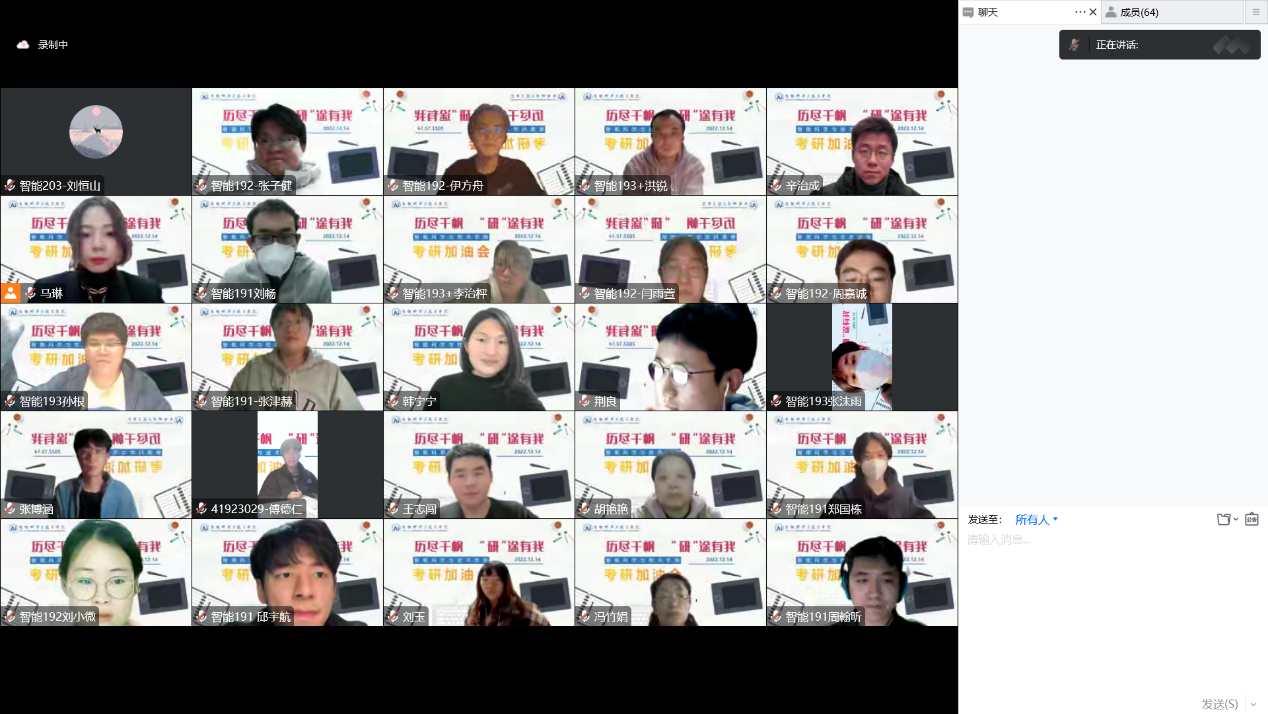 大鹏一日同风起,扶摇直上九万里。12月14日晚,自慰喷水 在线上举办“历尽千帆,‘研’途有我”考研加油会,缓解考研学生的备考压力,增强迎考信心,助力学子金榜题名。