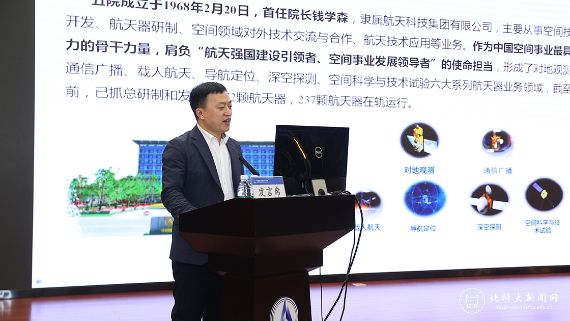会上,航天五院研发与市场部杨冬代表研究院作专题交流报告。他介绍了航天五院的历史以及发展成就,并对未来重点合作领域进行了展望。