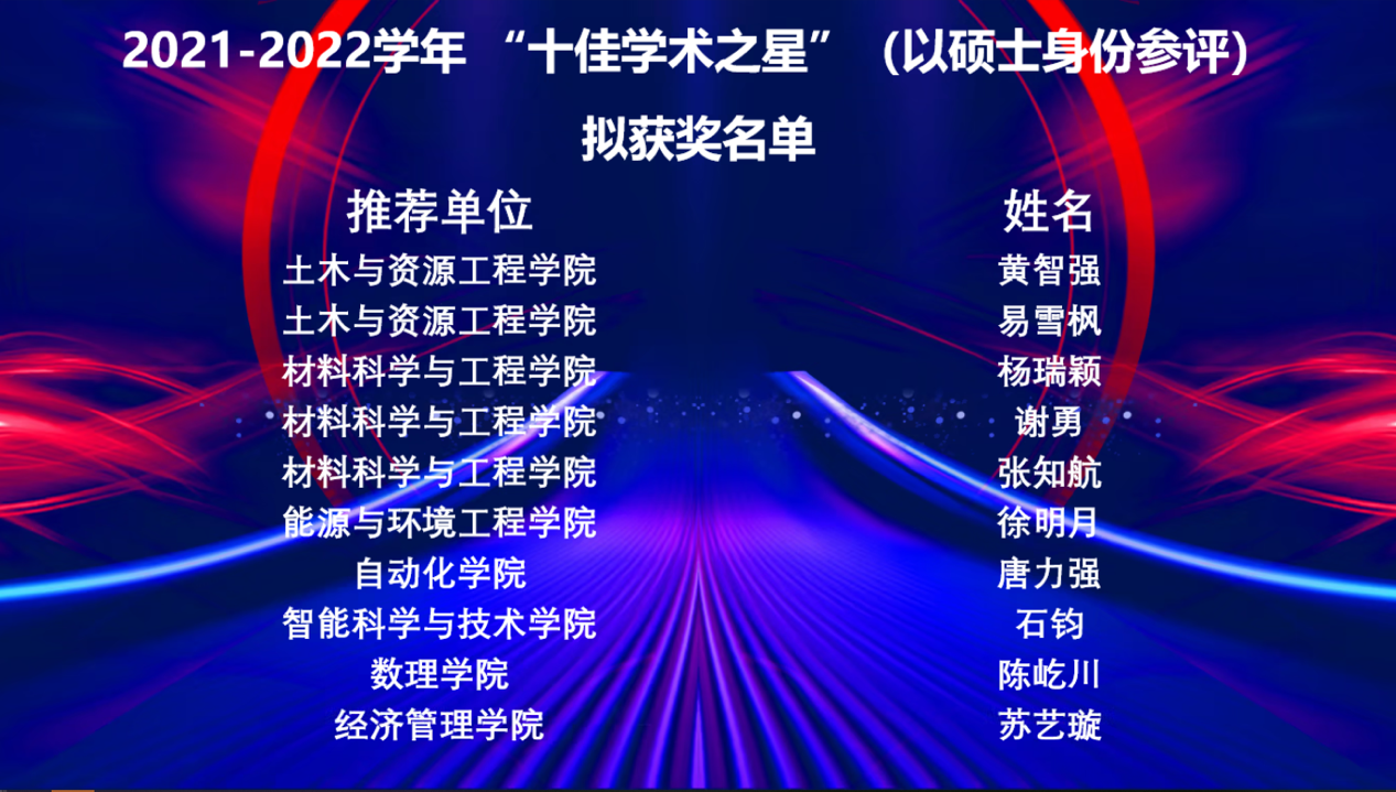 研究生十佳学术之星是学校设立的研究生最高学术荣誉,奖励在学术科研上有突出表现的在读研究生,自2005年起每年评选一次,至今已连续举办十八届。作为彰显研究生学术水平和科研能力的重要平台,十佳学术之星评选在研究生中具有极强的影响力和示范作用,受到了广大研究生以及导师们的高度认可。