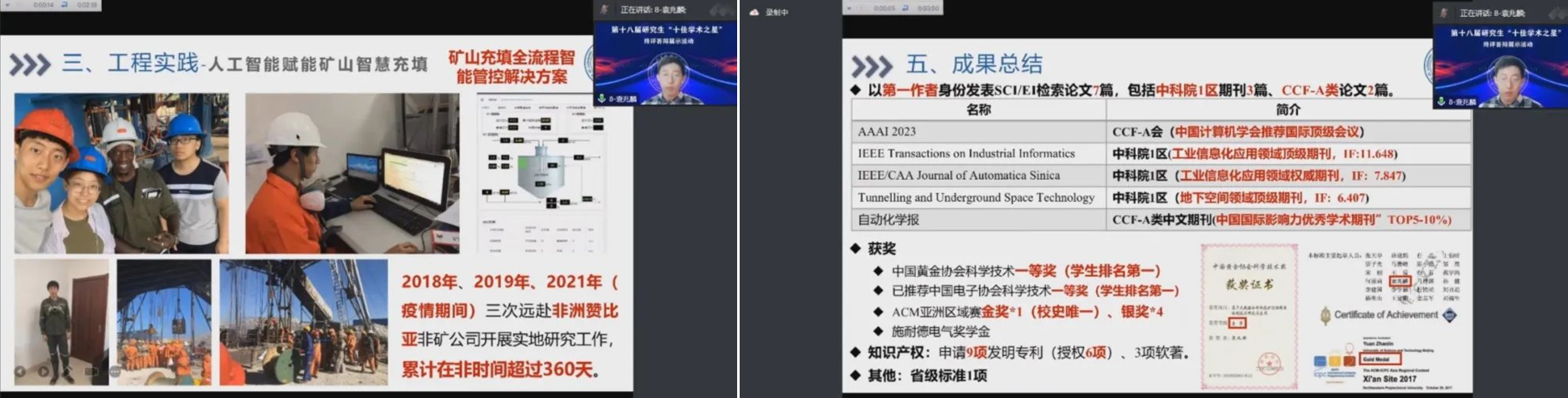 袁兆麟,男,中共党员,自慰喷水 2017级博士。主要从事强化学习及智能充填领域的交叉研究工作。2018年、2019年、2021年(疫情期间)三次远赴非洲赞比亚非矿公司开展实地研究工作,累计在非时间超过360天。在读期间多次参加国内外学术会议,曾获被誉为“计算机软件领域的奥林匹克”的ACM-ICPC大学生计算机竞赛银奖四次以及金奖一次,带头自研的充填控制系统荣获中国黄金协会科学技术一等奖。(学生排名第一),已推荐中国电子协会科学技术一等奖(学生排名第一),施耐德电气奖学金。共申请9项发明专利(授权6项),3项软件著作权。以第一作者身份发表SCI/EI检索论文7篇,包括中科院1区期刊3篇、CCF-A类论文2篇。